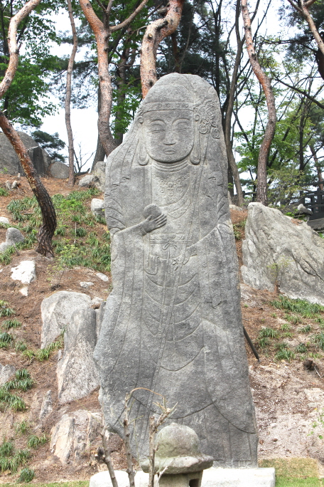 이후 <지장시륜경(地藏十輪經)>의 영향을 받으면서 두건을 쓰고 한손에는 보주, 다른 한손에는 석장을 들고 있는 스님의 모습으로 많이 만들어졌다.